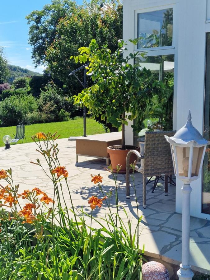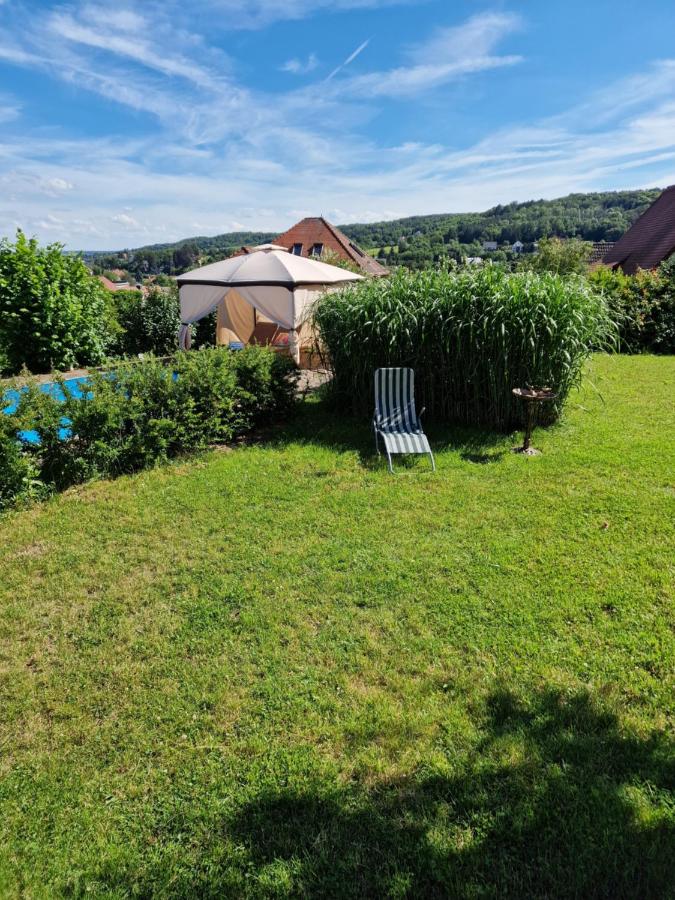 - Gartennutzung mit Liegewiese, Lesepavillon und Pool in Südlage je nach Saison