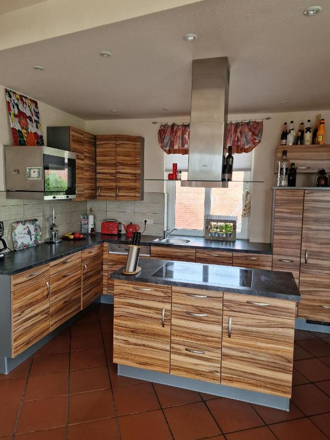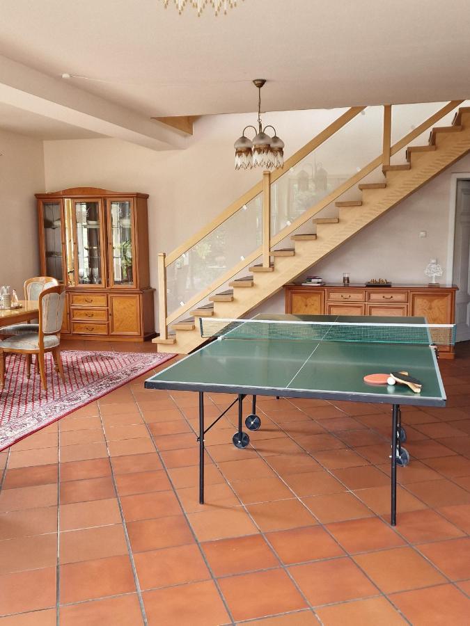 - Erdgeschoss: große Wohnküche mit Essbereich und Wintergarten; direkter Zugang zur 40qm großen Terrasse , Garten und Pool; Kaminofen und Tischtennisplatte